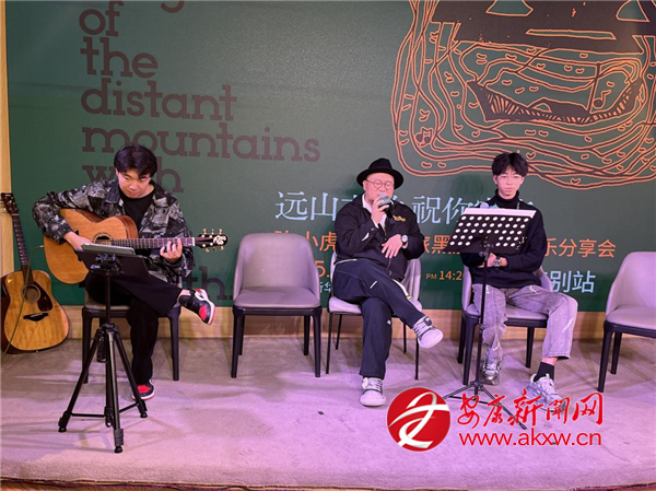 分享會由安康市融媒體中心主持人王倩擔任主持,她以簡潔有力的開場,引出本次活動的核心人物——被譽為“西北民謠詩人”的陳小虎。陳小虎登臺后,首先與主持人共同展開“人與城”的深度藝術對談,他分享了《祝你安康》的創(chuàng)作契機,并闡述了在數(shù)字時代堅持制作黑膠專輯的文化意義。
