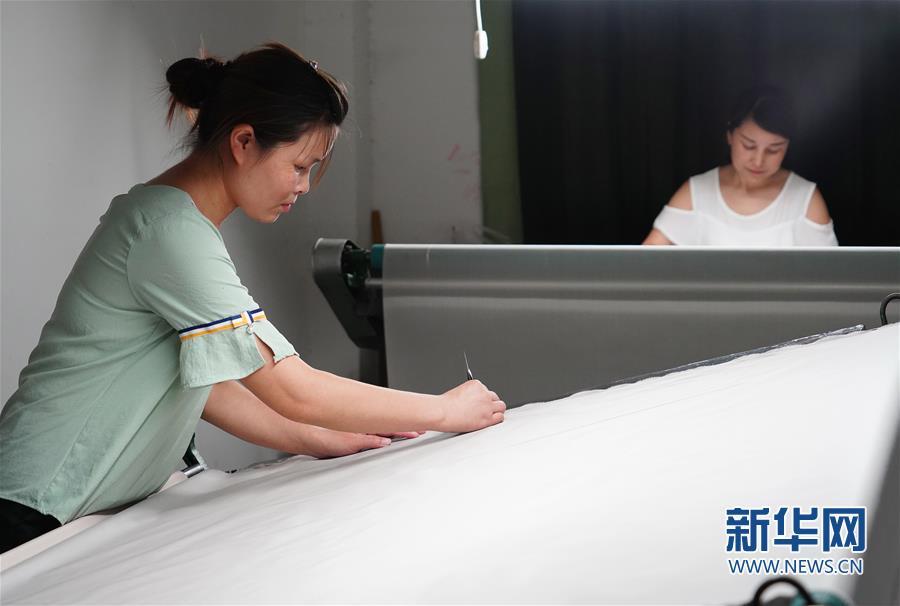 7月19日,工人在石泉縣陜西天成絲業(yè)有限公司檢驗(yàn)車(chē)間內(nèi)檢驗(yàn)修布。新華社記者 邵瑞 攝