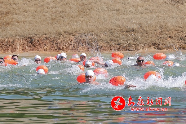 比賽現(xiàn)場,選手們你追我趕,在寬廣的湖中盡情體驗湖泊暢游的快感,享受著健身運動帶來的快樂。本次比賽場地選在瀛湖風景區(qū)翠屏島湖面,相較于傳統(tǒng)賽道比賽模式,天然水域上的比賽不但是游泳技巧的較量,更是勇氣、毅力、耐力的比拼。