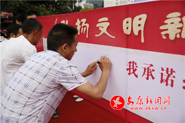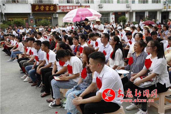 72名本科上線學(xué)生和家長佩戴著大紅花端坐在廣場接受全鎮(zhèn)鄉(xiāng)親們的祝福。老縣鎮(zhèn)黨委為金榜題名的學(xué)子頒發(fā)榮譽(yù)證書和獎金,同時,學(xué)生家長在“不收升學(xué)禮、不辦升學(xué)宴”承諾簽名墻前,簽下承諾簽名。在感恩父母環(huán)節(jié),父母與孩子深情相擁,他們真切的語言使整個會場充滿愛與感動。