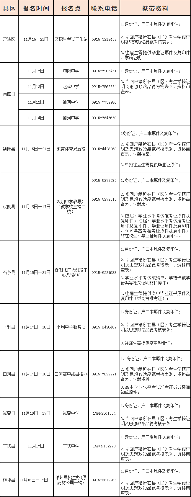 各縣(區(qū))具體報名安排如下:9kd安康新聞網(wǎng)