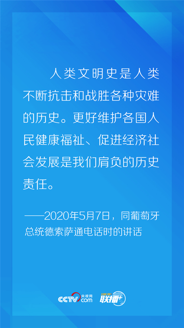 新冠肺炎疫情發(fā)生以來(lái),習(xí)近平主席始終堅(jiān)持人民至上理念,在統(tǒng)籌做好本國(guó)疫情防控和經(jīng)濟(jì)社會(huì)發(fā)展工作的同時(shí),頻繁與多個(gè)國(guó)家領(lǐng)導(dǎo)人及國(guó)際組織負(fù)責(zé)人保持電話(huà)、書(shū)信、視頻會(huì)議為主渠道的“云外交”溝通,處處體現(xiàn)著習(xí)近平主席以人民為中心的發(fā)展思想。
