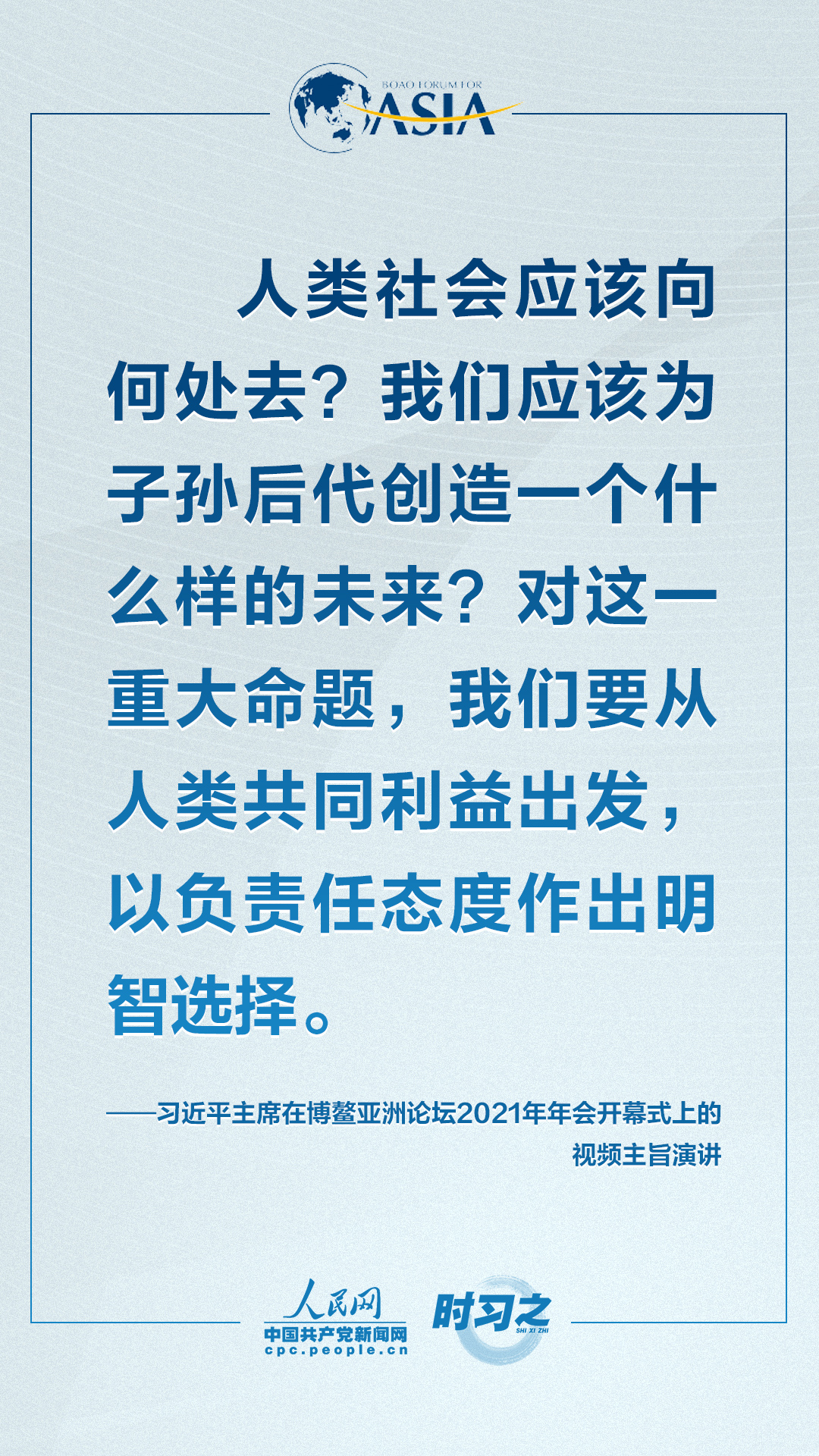 4月20日上午,博鰲亞洲論壇2021年年會開幕式在海南博鰲舉行,國家主席習(xí)近平以視頻方式發(fā)表題為《同舟共濟克時艱,命運與共創(chuàng)未來》的主旨演講。面對“人類社會應(yīng)該向何處去?我們應(yīng)該為子孫后代創(chuàng)造一個什么樣的未來?”的重大命題,習(xí)近平這樣對世界說。qTz安康新聞網(wǎng)