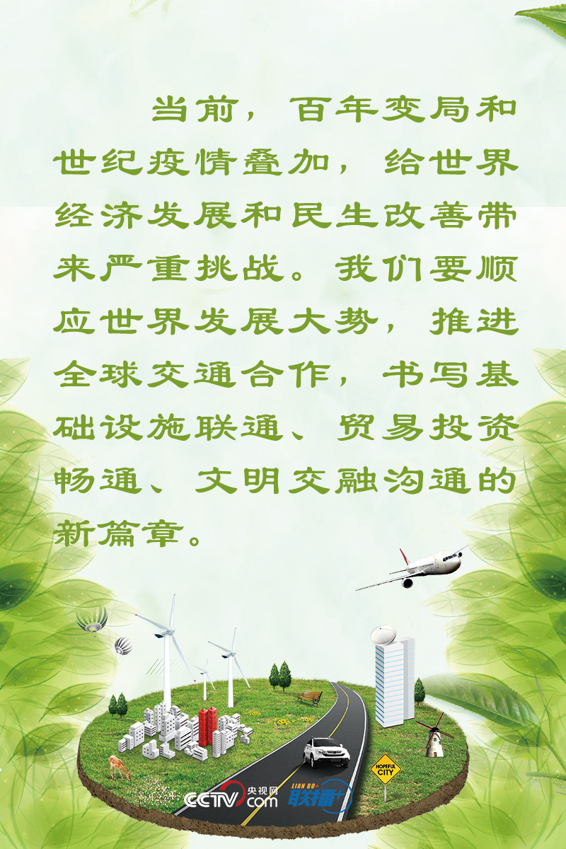 10月14日,習(xí)近平主席以視頻方式出席第二屆聯(lián)合國(guó)全球可持續(xù)交通大會(huì)開幕式并發(fā)表題為《與世界相交 與時(shí)代相通 在可持續(xù)發(fā)展道路上闊步前行》的主旨講話,深入分析當(dāng)前世界形勢(shì),提出五點(diǎn)倡議,為推進(jìn)全球交通合作貢獻(xiàn)中國(guó)智慧。