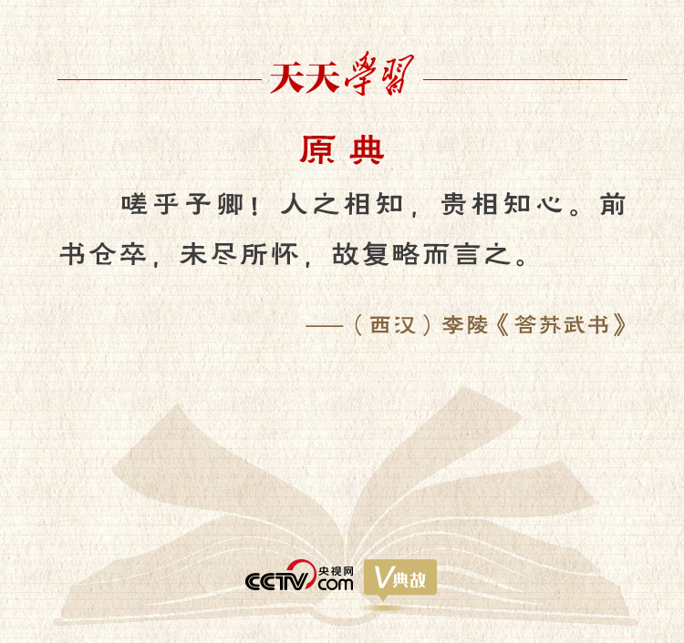 信中李陵為自己當(dāng)年投降匈奴的行為進(jìn)行辯白,并對(duì)蘇武發(fā)出了“人之相知,貴相知心”的慨嘆,認(rèn)為人與人之間的相互理解,最可貴的是彼此心靈相通。