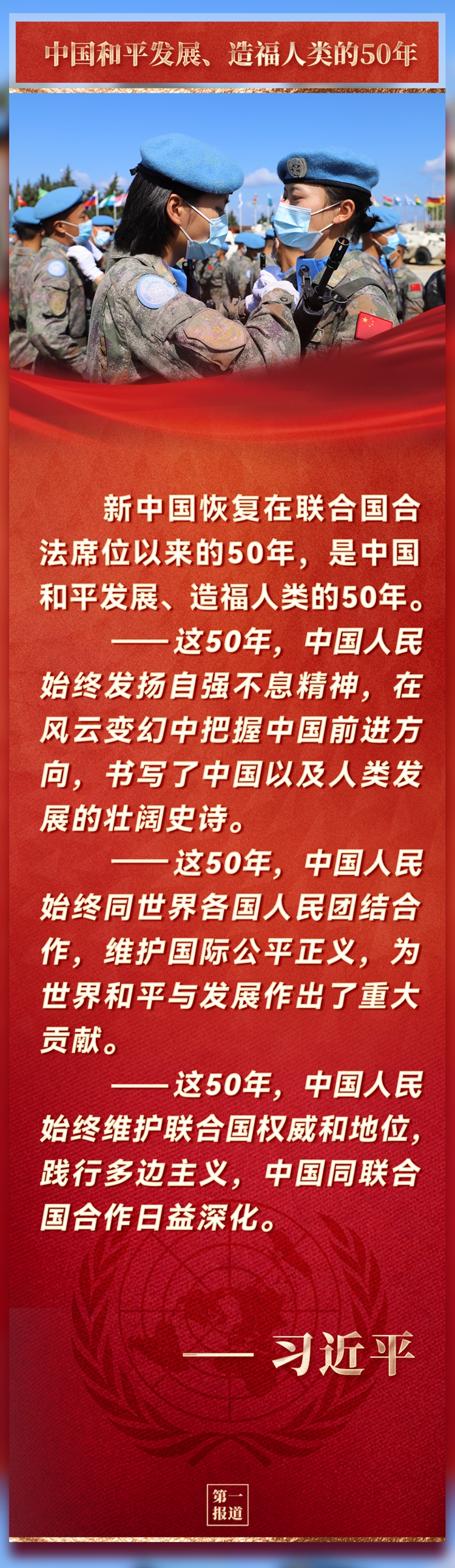 新中國恢復在聯合國合法席位以來的50年,是中國和平發(fā)展、造福人類的50年。