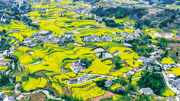 春分時(shí)節(jié),漢陰縣迎來了一年中最富詩意的季節(jié),春日的暖陽灑向大地,鳳堰古梯田油菜花海如金毯鋪展,櫻花、李花、梨花點(diǎn)綴其間,白墻黛瓦的村落與青山綠水相映成……
