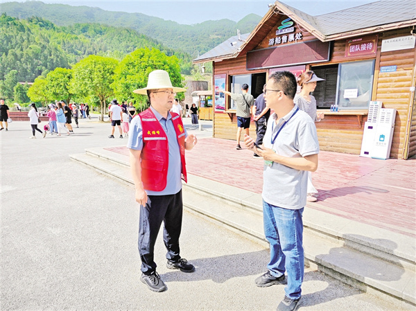 游客需要什么,黨員就做什么!今年“五一”期間,全鎮(zhèn)設(shè)立4個(gè)固定服務(wù)崗、30個(gè)流動(dòng)服務(wù)點(diǎn),配備2支摩托巡邏隊(duì)和200名志愿者,形成“點(diǎn)線面”結(jié)合的服務(wù)網(wǎng)絡(luò)。同時(shí)運(yùn)用“智慧監(jiān)管云平臺(tái)”,整合無人機(jī)巡查、AI人流監(jiān)測(cè)等技術(shù)手段,實(shí)現(xiàn)景區(qū)客流精準(zhǔn)調(diào)控,贏得了廣大游客的爭(zhēng)相稱贊。