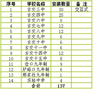 啟明星公司與古交市2012薄弱學校改造多媒體安裝數量統(tǒng)計表
