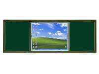 根據(jù)教室線路分布及投影吊裝位置,合理確定電子白板在框架內(nèi)的擺放位置(左、中、右)。邊框采用推拉式軌道,可輕松拉動外層滑動板,實(shí)現(xiàn)電子白板與綠板之間的自由切換,簡單方便;在推拉綠板左右安裝防碰撞橡膠墊圈,以減少撞擊力和噪聲。
