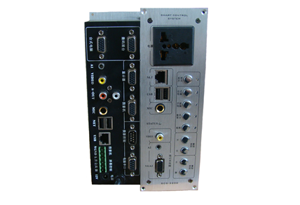 該系統(tǒng)采用一體化設(shè)計,小巧靈便,高度集成,內(nèi)置3X2 VGA切換模塊,2x2音視頻切換模塊,可獨(dú)立編程的RS-232控制功能,同時增加了控制代碼的宏處理功能,獨(dú)立的投影機(jī)管理功能,內(nèi)有系統(tǒng)電源的管理及電動幕的控制功能。操作面設(shè)計有電源座、VGA、立體聲座、2路USB、NET等接口,該系統(tǒng)采用鋁拉絲面板,不銹鋼按鍵。