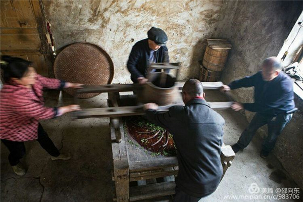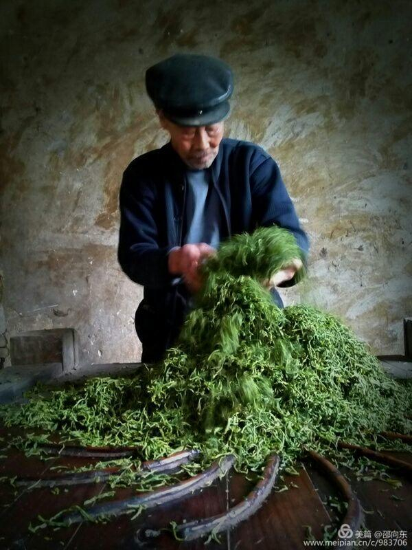 一群群花紅柳綠的采茶人,依著茶山一字排開,嬉笑逗樂間兩手如飛梭,一片片毛尖芽頭便攥入手中,落入竹簍,其穩(wěn)、準、快、靈如同魔術。初產之春獨早銀針每斤芽頭約四萬枚,左右誤差不出百余,據(jù)說這明前銀針唯有這十七、八的山妹子親手采摘,制出的茶才別有一番甜香之氣,這也是傳統(tǒng)紫陽貢茶奧妙之所在。
