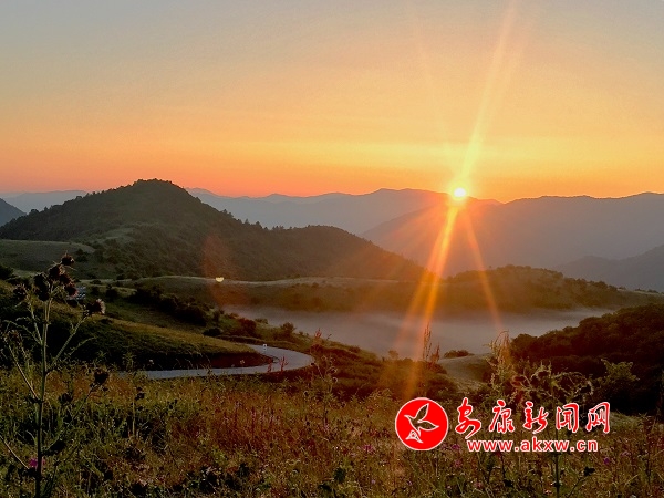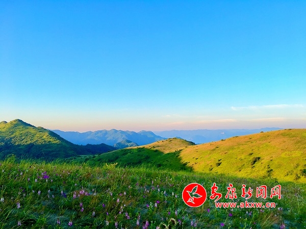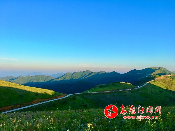 極目遠眺,連綿的青山,玉帶似得盤山公路蜿蜒起伏。坡麓平緩,無垠無際,宛如一幅美妙的畫作。iYr安康新聞網(wǎng)