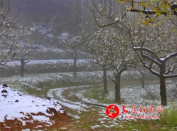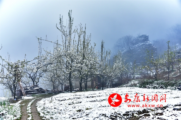 日前,一場(chǎng)洋洋灑灑的春雪,讓平利縣城關(guān)鎮(zhèn)龍頭村太平寨展現(xiàn)出春雪壓梨花的美景。據(jù)悉,太平寨有梨樹十余畝,與絞股藍(lán)栽植套種,年產(chǎn)酥梨萬(wàn)余斤。(王韜 攝)wsA安康新聞網(wǎng)