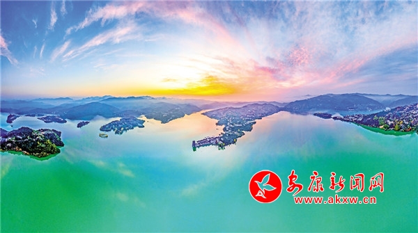 瀛湖是中國(guó)獨(dú)特的山水風(fēng)光之湖。秦嶺與巴山夾峙護(hù)佑,造就了如畫(huà)的湖,形成了夢(mèng)幻的景。四時(shí)風(fēng)光,不遜西湖,不輸洱海,亦可自比千島湖。瀛湖冬景中蘊(yùn)含著春華與秋色,初冬游覽瀛湖,遠(yuǎn)能看青山不墨千秋畫(huà),近可聽(tīng)流水無(wú)弦萬(wàn)古琴。山起西北下東南,江自天邊出河谷,形成了地形上的小氣候,冬日里應(yīng)是天寒地凍,但瀛湖一地,冬雨過(guò)后,山谷風(fēng)來(lái),云興霞蔚,日影扶疏?瓷,群山層林盡染,如調(diào)色板傾覆其上,一坡樹(shù)枝隨風(fēng)變,斑斕色彩比花美,游人盛贊“此景只應(yīng)天上有,人間能得幾回見(jiàn)”。觀水,湖面寬闊清凈,風(fēng)起波瀾,水光瀲滟,舟行碧波,人在畫(huà)中。晨起湖面輕霧籠罩,是海上瀛洲的景象;正午云光投射湖面,天空之鏡如夢(mèng)幻般瑰麗;傍晚行至水窮處,坐看云起,就有了迷人的霞光,或金黃或橘紅,給湖面一層層染色,與山林應(yīng)和,便是紅黃翠綠清且淺,萬(wàn)般顏色不爭(zhēng)春了。