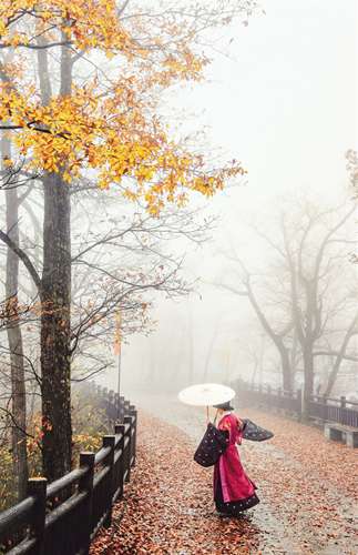 入冬之后,石泉云霧山鬼谷嶺景區(qū)的樹葉紅了,登上山頂遠(yuǎn)眺群山,疊翠流金,云霧縹緲,宛如人間仙境。