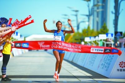 埃塞俄比亞選手貝耶妮以2小時(shí)27分44秒奪得女子組冠軍。