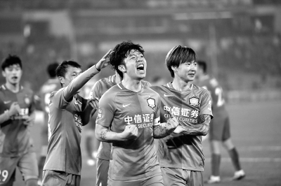 張稀哲打入點(diǎn)球后慶祝。 本報記者 和冠欣攝