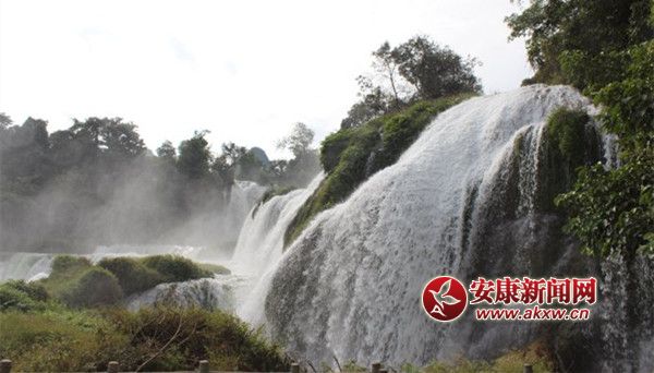 沿著河灘的花徑向前繼續(xù)走,將進(jìn)兩公里的二浪灘美麗如畫的青石山、綠水,更不堪說。沿途觀山越景也不知道累和餓。臺(tái)頭向前看,只見前面不遠(yuǎn)處一座鋃白色的漢江大橋向一條巨尤騰空而過在江面上。最讓人們不可思議的是漢江水面上突來一泓清流從大橋正中下穿流而過,在橋上形成寬闊的瀑流注入身邊這個(gè)大河。我們幾個(gè)任意沿橋兩邊,隨行人順臺(tái)梯而上,無論向哪個(gè)方向眺望,遠(yuǎn)山、近水、花木、房舍都自成一幅匠心獨(dú)運(yùn)的山水畫卷。大家連連感嘆這世間竟有如此勾人魂魄的秘境。在仔細(xì)打量這座大橋,原來這就是石梯鎮(zhèn)新建的一座富民橋。橋正面,魏然屹立的政府大樓上空紅旗飄楊,標(biāo)志著石梯人民勤勞勇往向上的精神。
