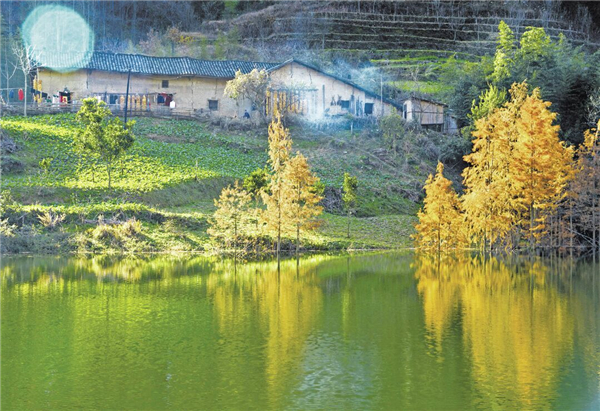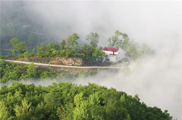 在水中,一條油潤潤的小路,融匯了大地的物語,春雨的澆注,還有輕輕觸碰就會變幻的神秘。道路的兩邊,是造型夸張要滴出翠來的植物,阻擋了行人的腳步,牽絆了路人的衣服,會給那些衣服沾染上艷麗的花粉,在深夜里都會散發(fā)出一股醉人的清氣,仿佛有什么該想而未想,心里蘊滿了不能為人道皎潔的白月光。沿著那條路,就是在水中宛若樓臺亭閣一般的房屋,黑瓦房、白墻壁,杏花、桃花、茉莉花爭相簇?fù),房子便如置身其中的嬰兒了。還有小奶狗在屋前悠閑地打盹,太陽直射下來,貓也走來湊湊熱鬧,貓的眼睛碧藍(lán)澄澈,仿佛天使之瞳,總是帶著先知或者驚異審視的表情……而與此相對的,就是炊煙了,唯有炊煙將我們拉回世俗庸常之中,飯菜的香氣,去年果木熏的臘肉,農(nóng)家自己釀的一碗包谷燒,啊,真想喝點小酒,酒的美妙不在于入口的辛辣,而在于微醺之時,那種難以控制的快樂!古來圣賢皆寂寞,唯有飲者留其名,明天的事,明天再說吧!