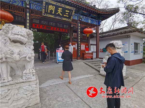 本網(wǎng)訊(記者 羅超)9月11日,在安康市香溪洞景區(qū)“三天門”外,不少市民、游客正在大門附近有序排隊(duì),在不遠(yuǎn)處,文明旅游相關(guān)標(biāo)語(yǔ)設(shè)置在醒目位置,不少人依次通過閘機(jī)進(jìn)入景區(qū)。