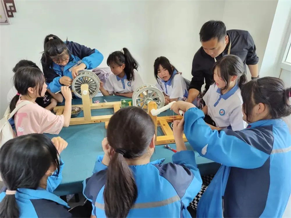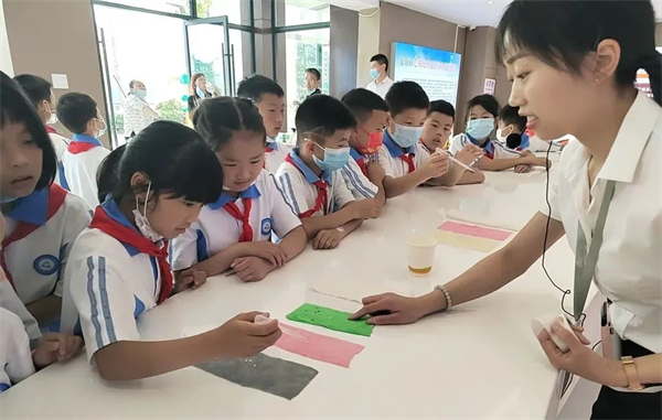 在這里可以體驗的活動有:一蠶繭手工DIY,孩子們可以充分發(fā)揮自己的想象自己創(chuàng)作;二是剝繭抽絲課堂,孩子們可以親手體驗繅絲的神奇,將一根根蠶絲擰成一股繩感受古人的聰明智慧;三是微觀世界課堂,讓孩子們學習顯微鏡的構(gòu)造與使用,體驗微觀世界的神奇,親自動手制作桑葉標本,觀察并記錄了顯微鏡下桑葉的形態(tài)特征,最后還可以近距離觀察蠶寶寶,沉浸式體驗蠶桑教育文化。