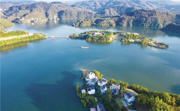 □ 唐玉林瀛湖是一幅畫,有島有水,有橋有船,有湖有亭。有石有樹。天是藍(lán)的,水是綠的,山是青的,小島匍匐水上,像琵琶,像樹葉,像一個調(diào)皮可愛憨態(tài)十足的嬰孩……