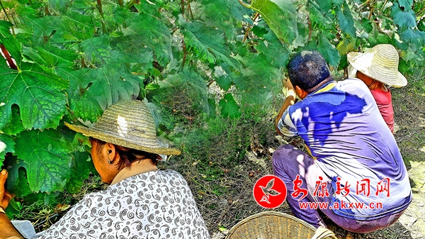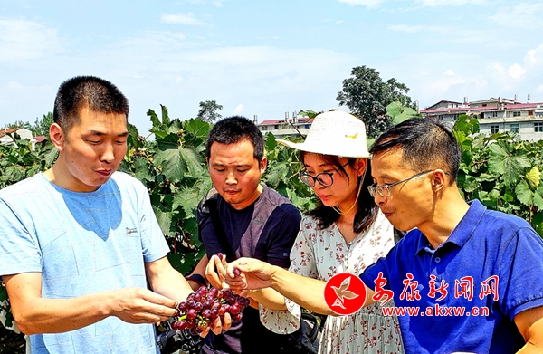 正午時分,在漢濱區(qū)五里鎮(zhèn)劉營村一組,一波人正在“黑牛”上躥下跳地帶領下,揮汗如雨踏草穿林,來到葡萄樹旁、甜桿兒林里、瓜前李下,拍照片、尋問題,完全不顧氣溫已達到“白熱化”階段。