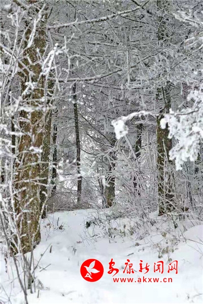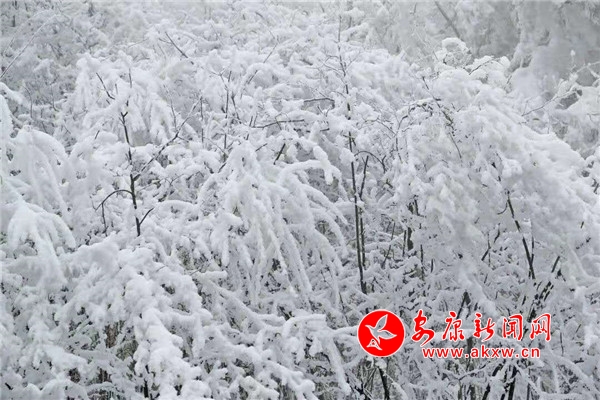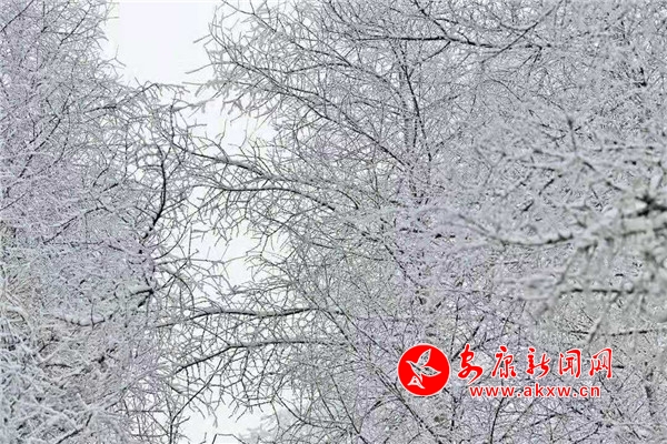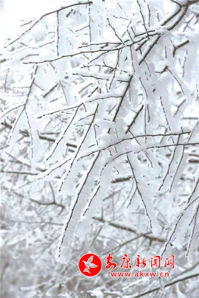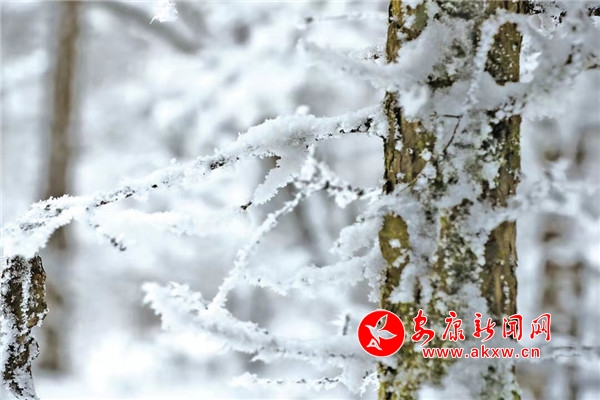 在青松的針葉尖上,在柔韌的枝條末梢,冰凌、霧凇、雪柳、樹(shù)掛……鋪天蓋地,肆意飛揚(yáng)。憑欄遠(yuǎn)眺,萬(wàn)千輕羽蔓延鋪陳,寒山枯色被這天地間的精靈喚醒。空山不見(jiàn)人,但聞雪落聲。